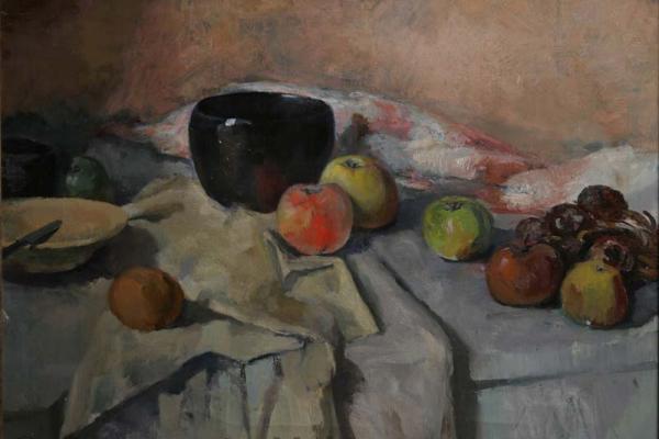 Stilleven met zwarte pot